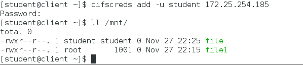 [hello@client ~]$ cifscreds add -u student 172.25.254.152