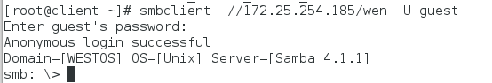 smbclient //172.25.254.185/wen -U guest