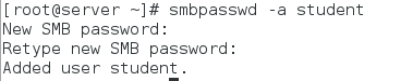 smbpasswd -a student ##必须服务端存在的用户