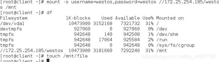 mount -o username=westos,password=westos //172.25.254.152/westos /mnt