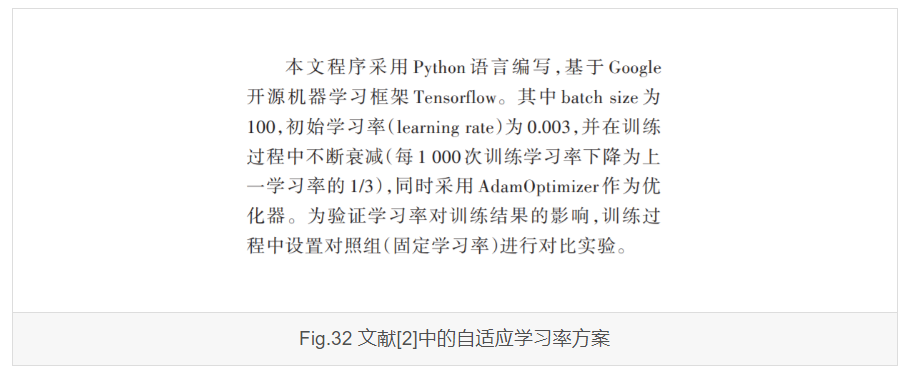 既然固定学习率不能很好地解决问题,我们自然而然的就想到了自适应学习率,这和我们做图像处理时选用自适应阈值道理是一样的,因为我们都想要找到一个鲁棒性更好的算法。现有的优化算法有很多,比如 AdaGrad 、RMSProp、Adam 等等。除了利用现有的优化器之外,我们还可以自定义一些,比如让学习率以指数下降、分段下降、多项式下降等等。在实验时,我也尝试过自定义方案,不过遗憾的是不管怎么调整,都不能使最终的训练结果收敛,因此最终还是采用了 tensorflow 中现成的 Adam 优化器优化算法。