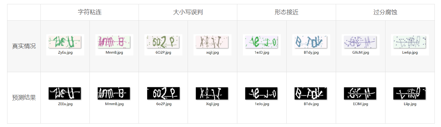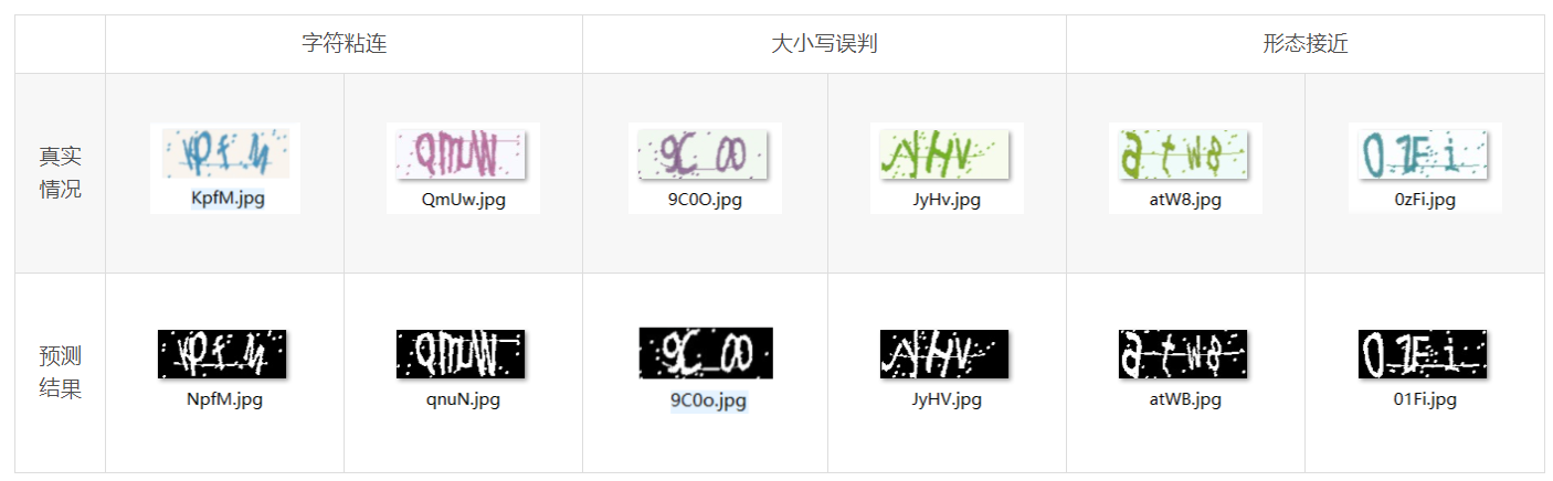 从最终的识别结果来看,不论是对照组还是实验组,都无法解决字符粘连、大小写误判以及区分形态接近的字符这三种问题。其实,对于人眼来说,很多时候都不能很好的完成这样的识别工作。因此,在现实情况中,各大平台大多都避免了这类极易混淆的验证码生成,并且还设定了人性化的验证码刷新功能,降低用户使用的困难程度。