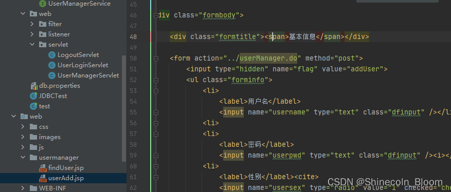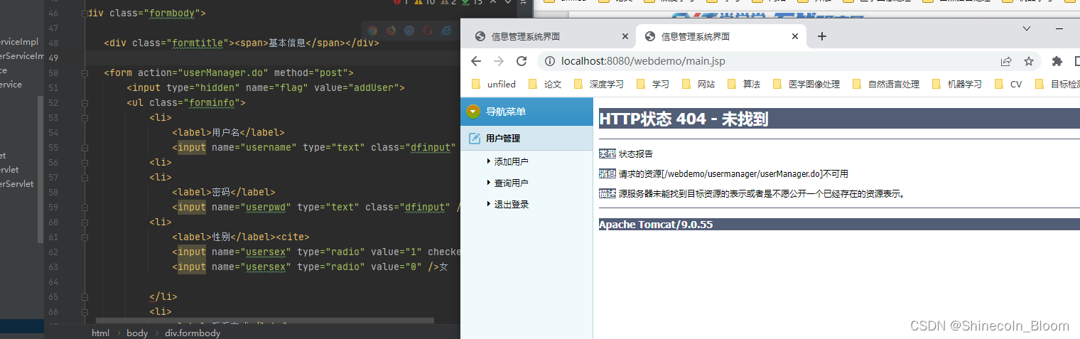 原因:userAdd.jsp被放到了web的子目录usermanager下面了,所以定位不到servlet资源了。