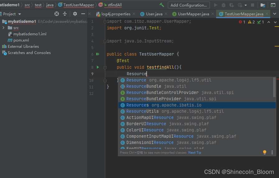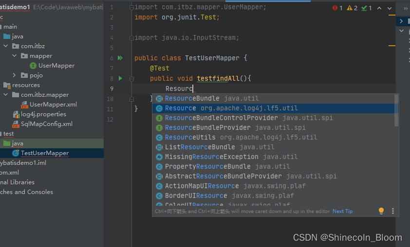 问题:导入Mybatis框架和进行基础的查询操作,在网上找了教程配置后运行总会有找不到resources错误