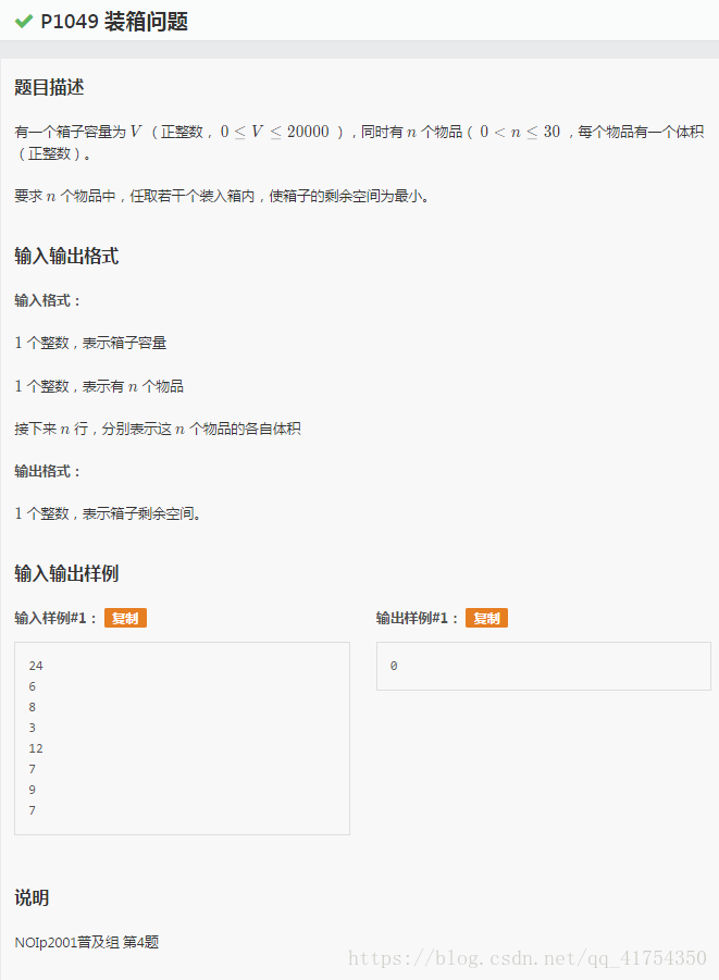 举个例子 洛谷 P1049 装箱问题(其实也很水)