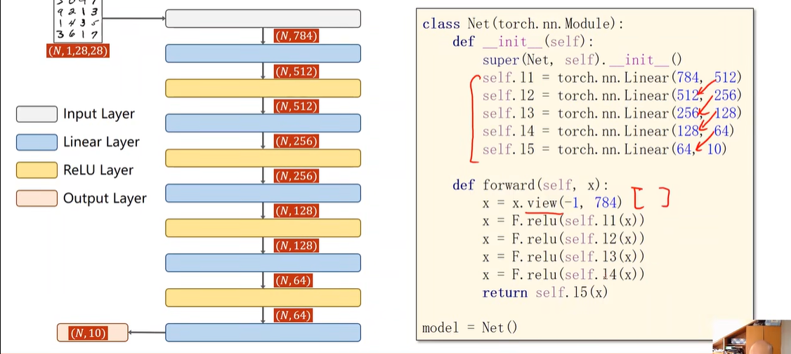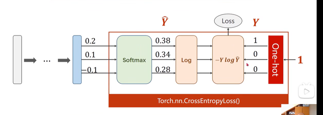 最后要将输出传到 CossEntropyLoss里:先进入softmax,然后取 log 进行计算,因此,我们在多分类问题中,最后一层就不要加激活函数了,在 CossEntropyLoss 里 就已经自己带着了