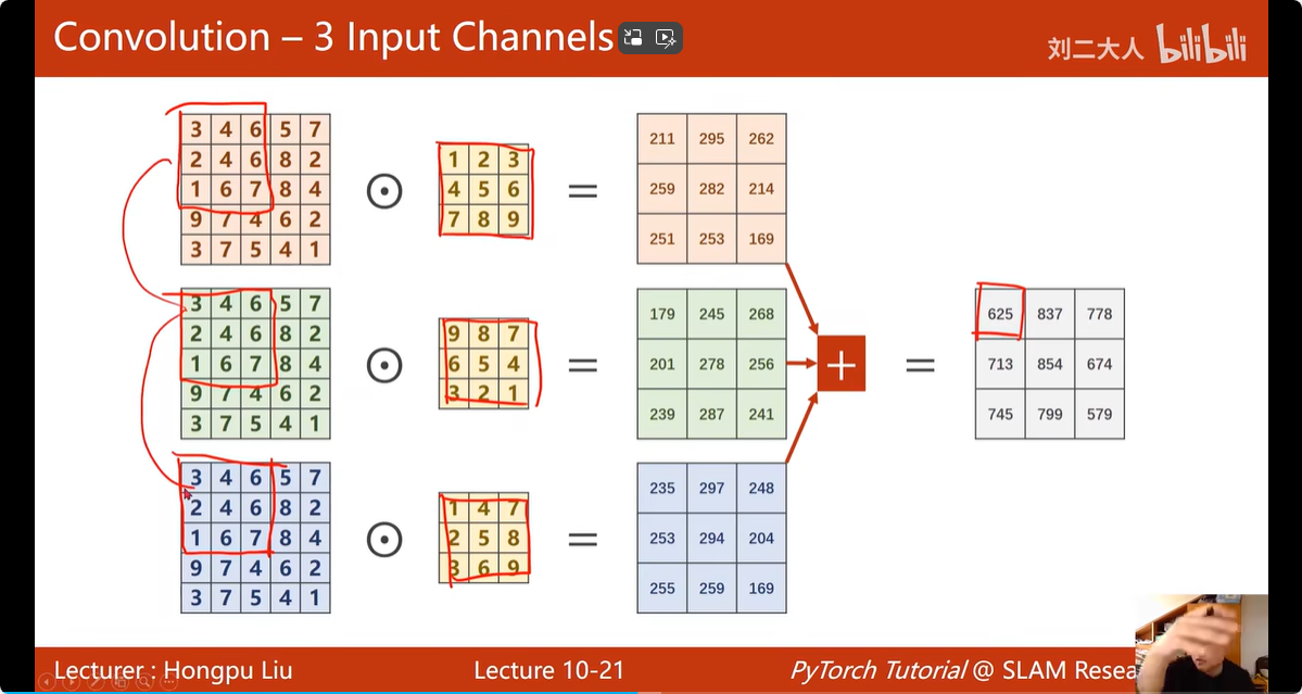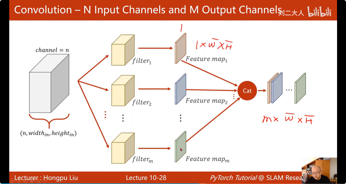 对于输入,输入的通道数 = 卷积核的通道数,例如,输入图片为3通道,RGB;卷积核也有3个通道,每个颜色的 通道配一个卷积核