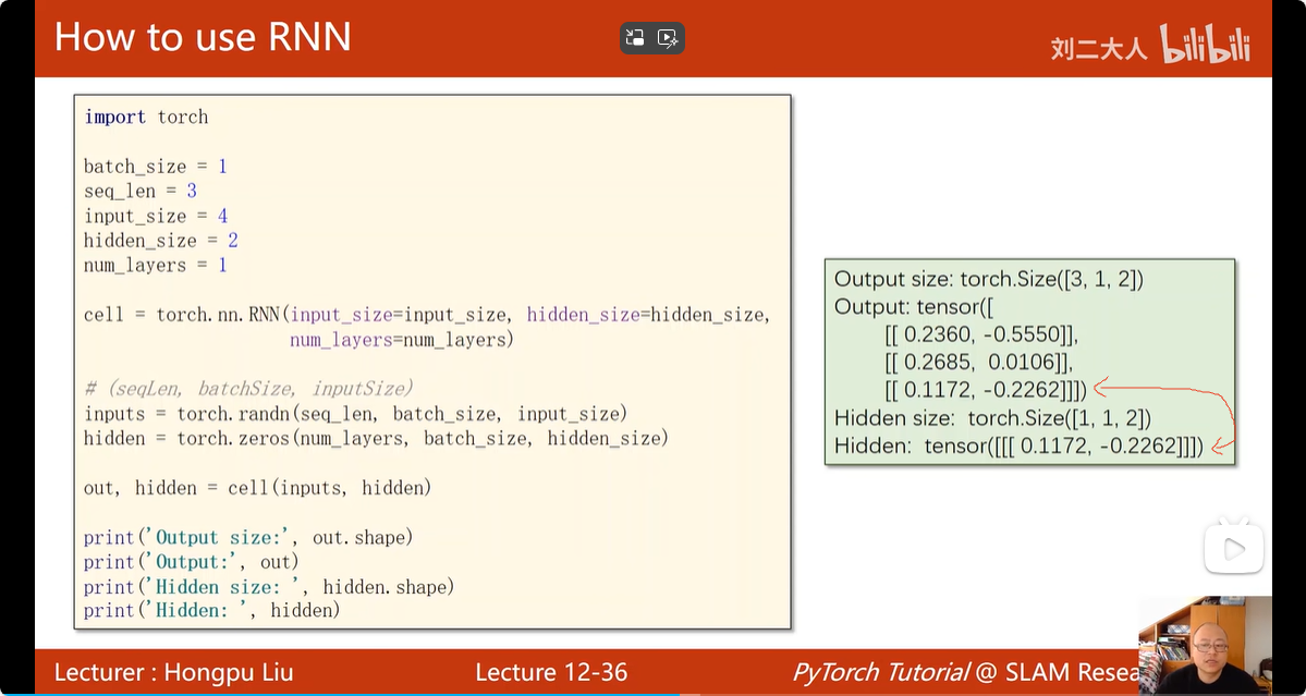 torch.nn.RNN 的输入输出: