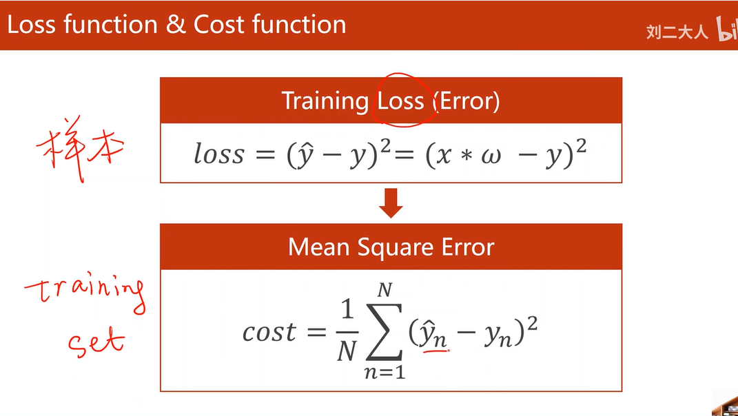 损失函数式针对一个样本的,代价函数是针对全部训练样本的