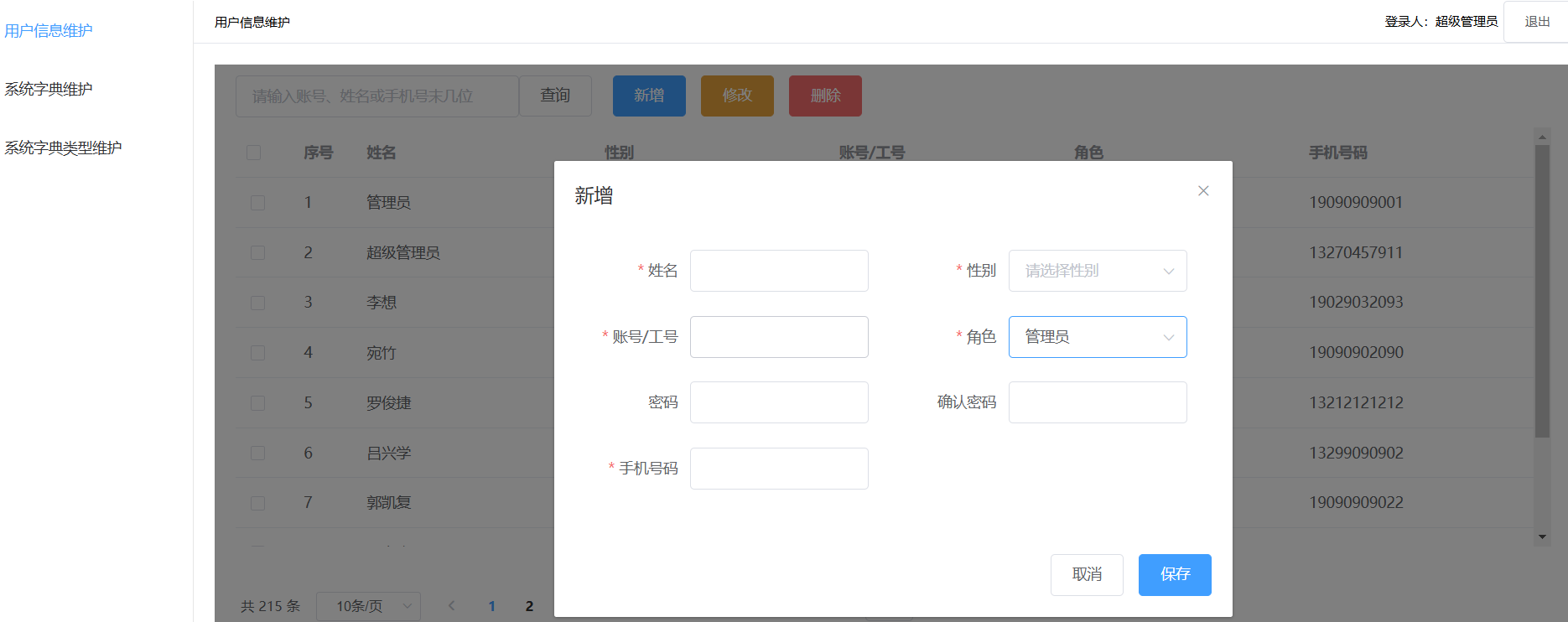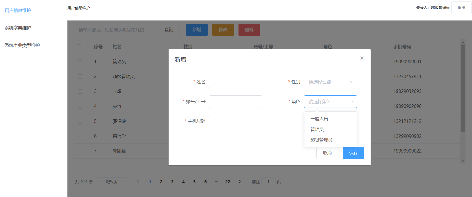 使用超级管理员角色账号登录进入到系统管理维护页面,可维护用户信息,其中一般人员是属于参与抽奖人员
