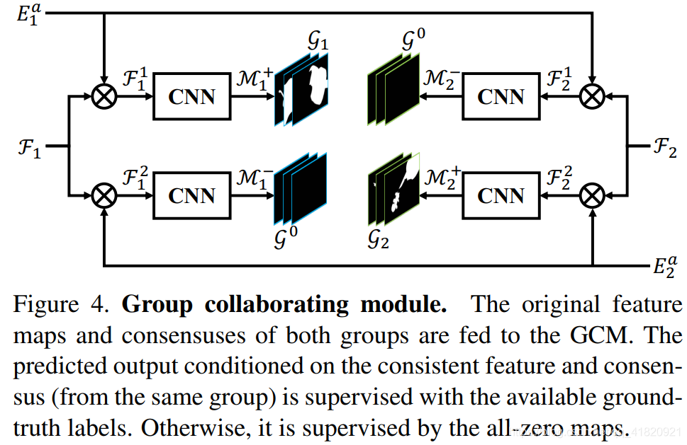 表示组间的关系特征,提供组间可分离的共性,将其经过小的CNN后,用全为0的图进行监督(消极关联)。