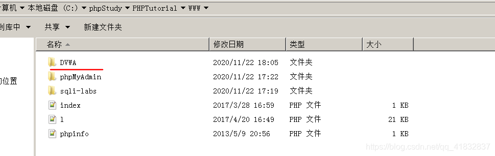 安装好phpstudy后,启动它,将解压好的dvwa放到C:\phpStudy\PHPTutorial\WWW目录下:
