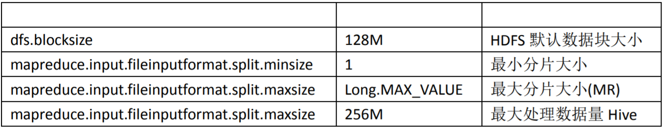 set mapred.max.split.size=256000000; ##每个 Map 最大分割大小