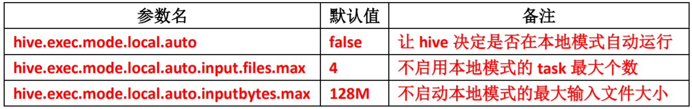 hive.exec.mode.local.auto.inputbytes.max 所指定的大小时,才能启动本地模式。