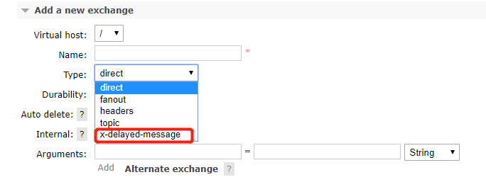 return new CustomExchange("kms.delay.exchange","x-delayed-message",true,false,map);