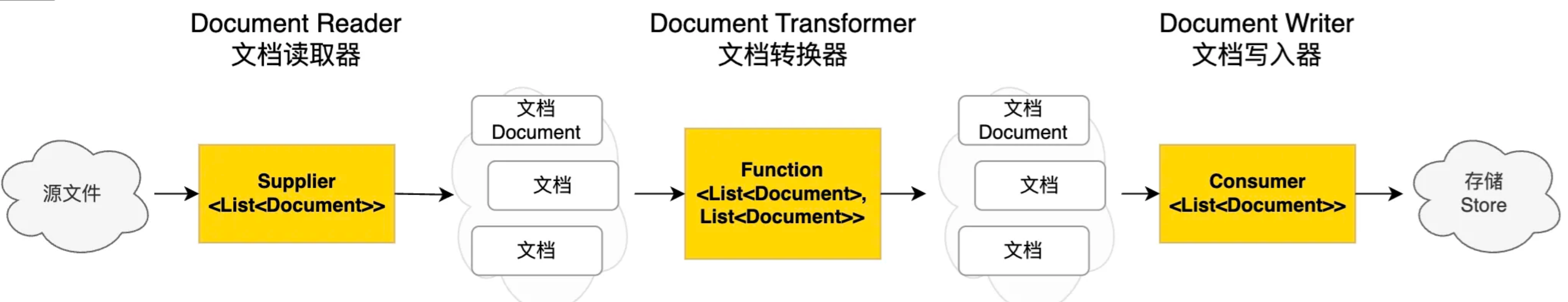 - DocumentWriter:将文档列表保存到存储中(可以是向量数据库,也可以是其他存储)