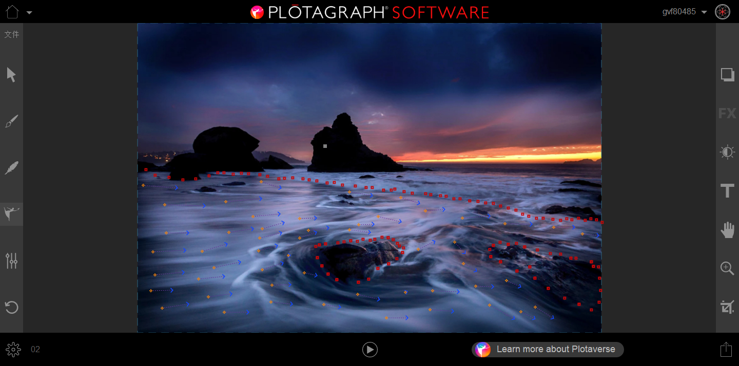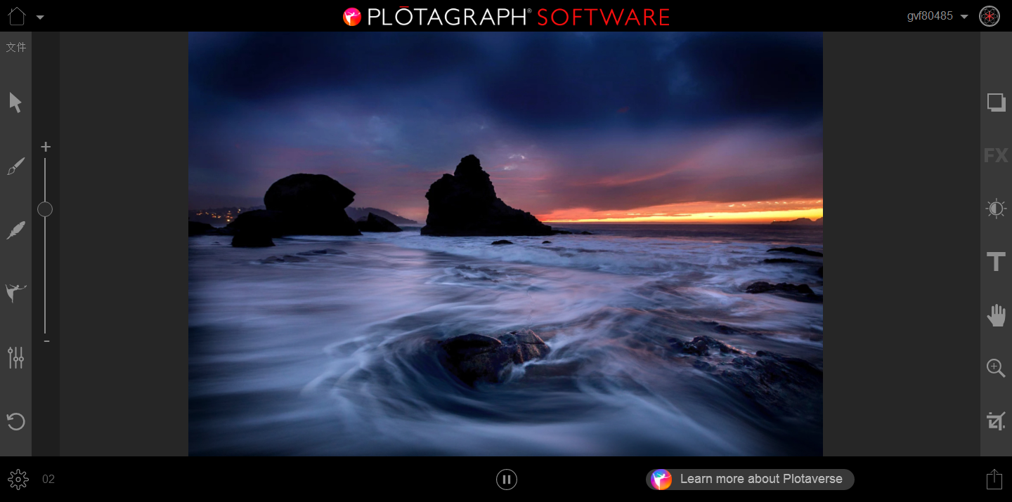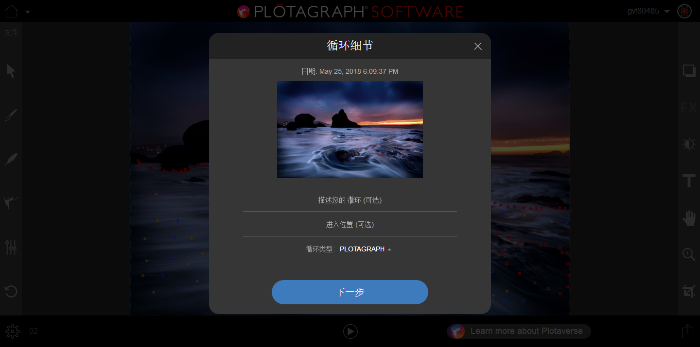 02、正式进入制作界面,点击中间的“+”,点击“PLOTAGRAPH”,上传我们需要制作的图片,然后点击创建。