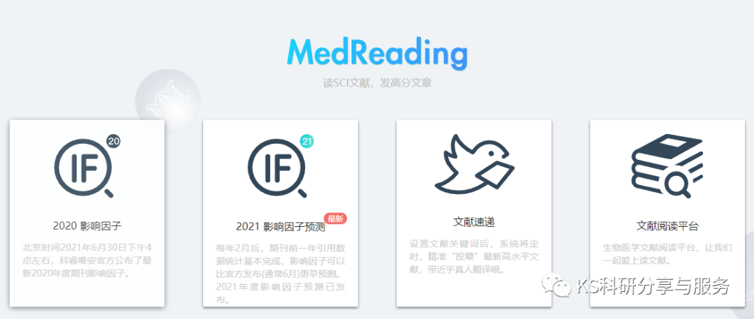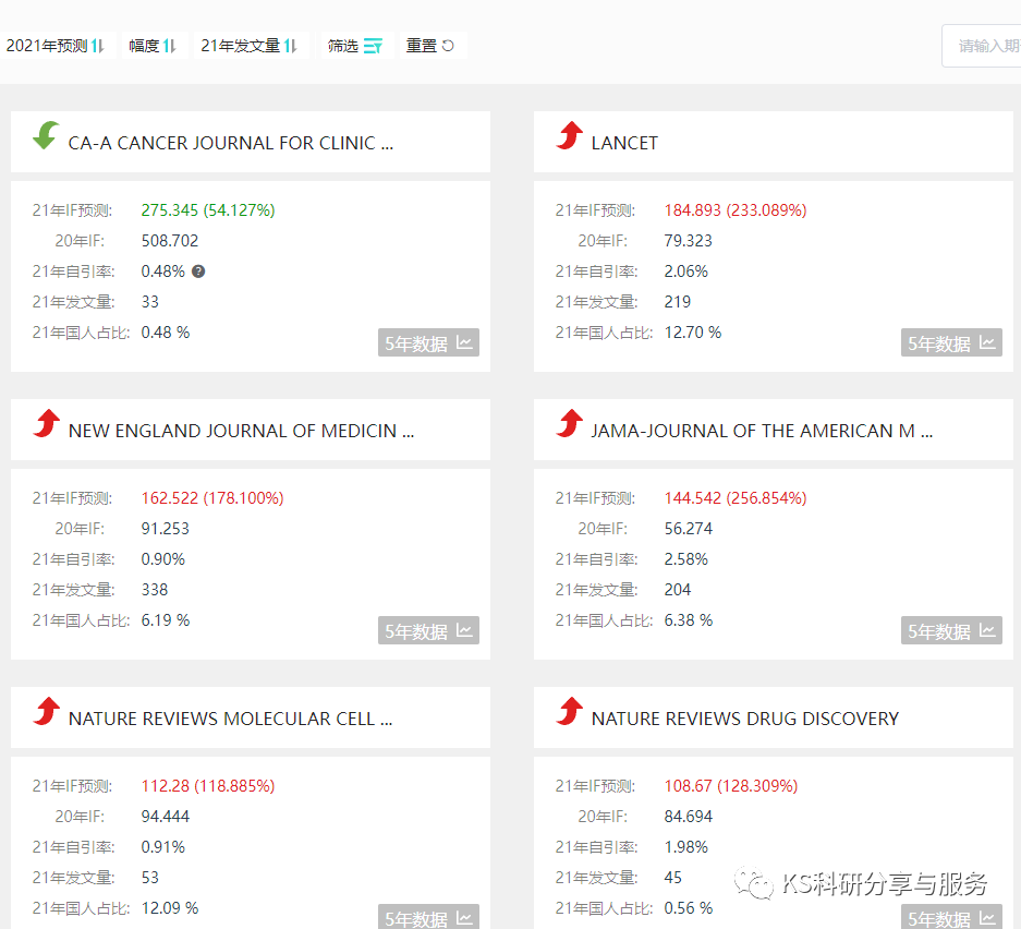 一共四块功能,直接点击2021 IF预测查看吧。或者左侧可以查询2020影响因子。
