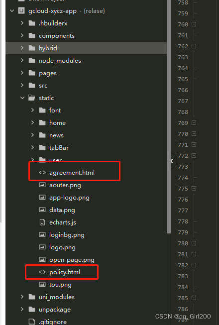 1.uniapp隐私政策和服务协议,在static下新建html文件,或者新建hybrid->html->文件名.html