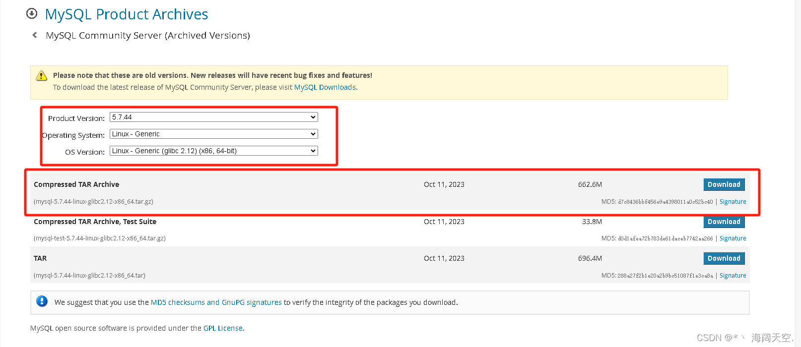 mysql官方下载地址:MySQL :: Download MySQL Community Server (Archived Versions)
