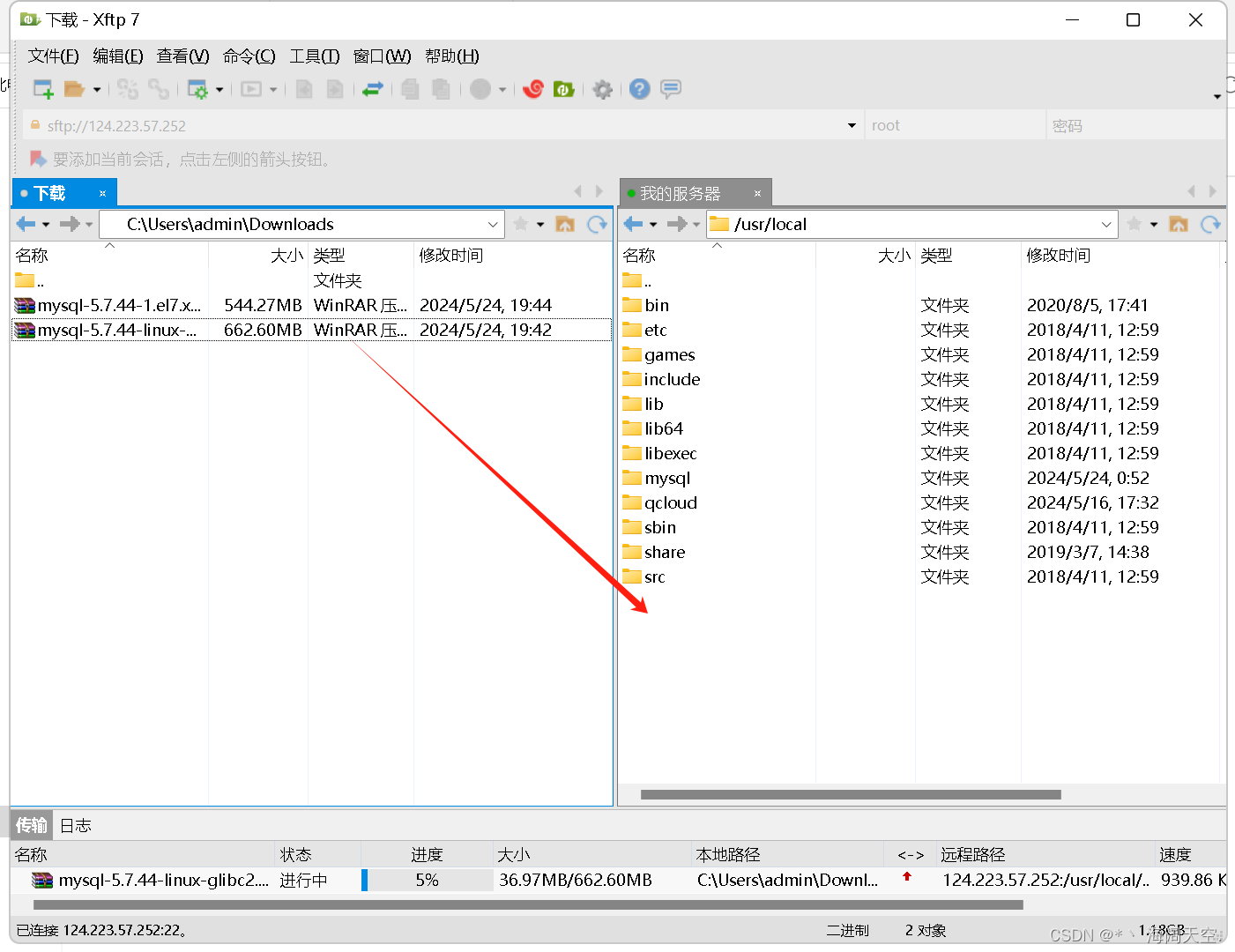 1.下载上传mysql,一般放在/usr/loacl目录下