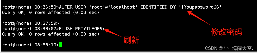 ALTER USER 'root'@'localhost' IDENTIFIED BY '!Youpassword66';