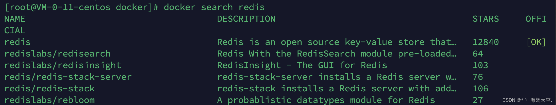 - docker search --limit 5 某个镜像名字 查找某个镜像限制前5条