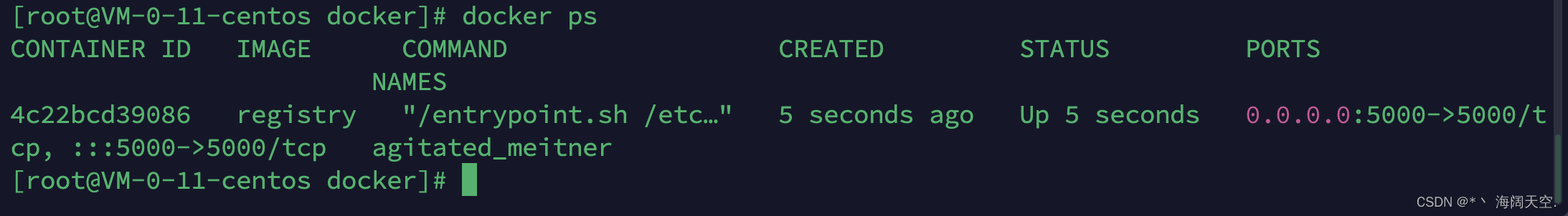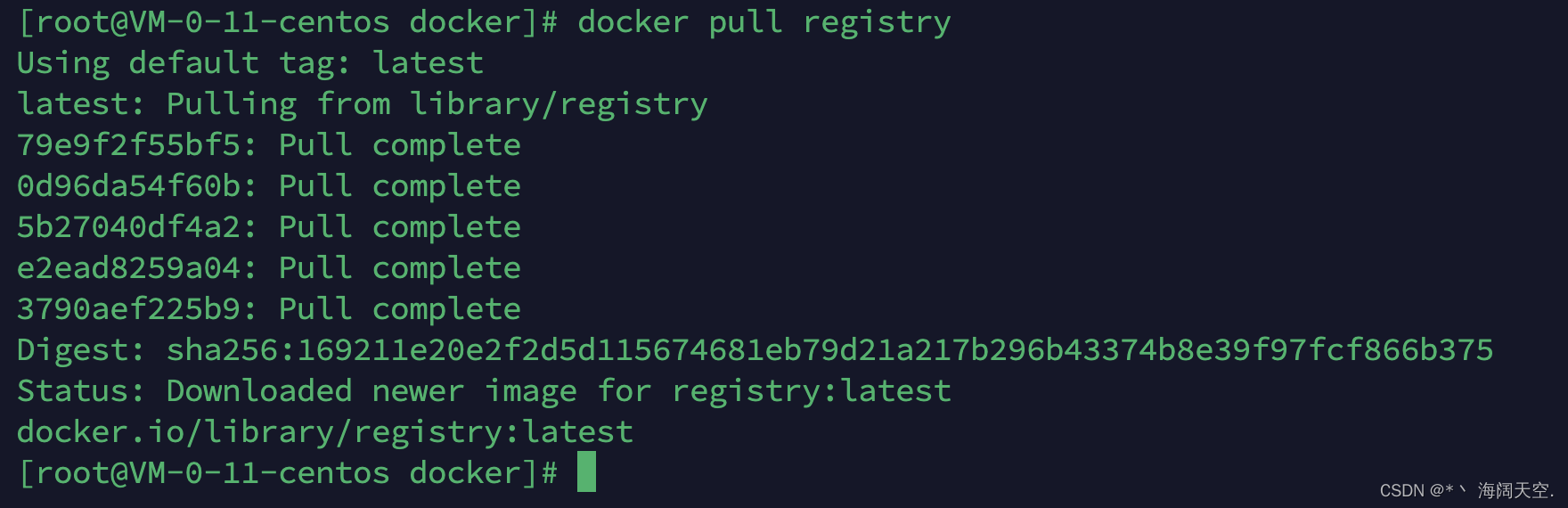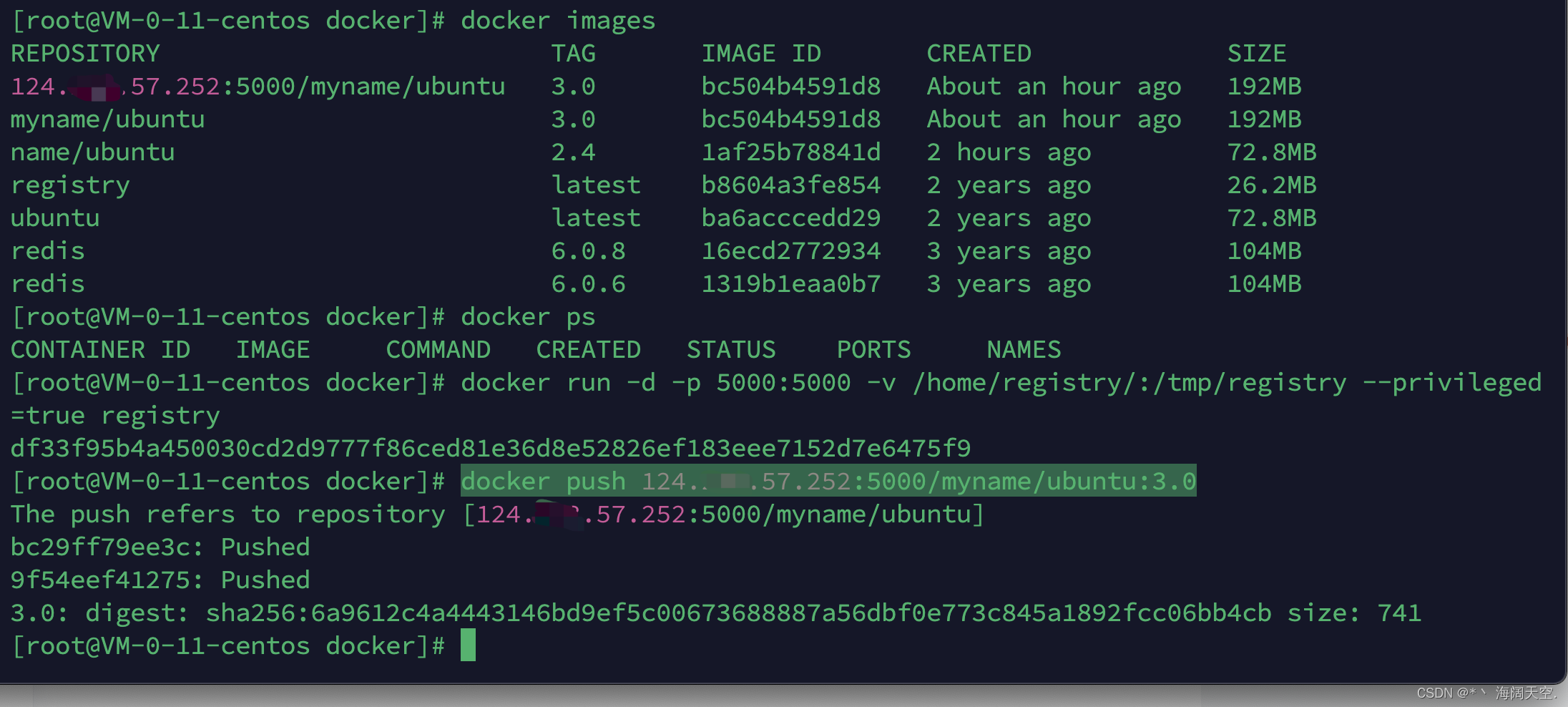 仓库(registry):镜像仓库是用于存储和分发 docker 镜像的地方。最常用的公共镜像仓库是 Docker Hub,上面有大量的官方和社区共享的镜像。此外,还可以搭建私有的镜像仓库,用于存放自己的镜像。