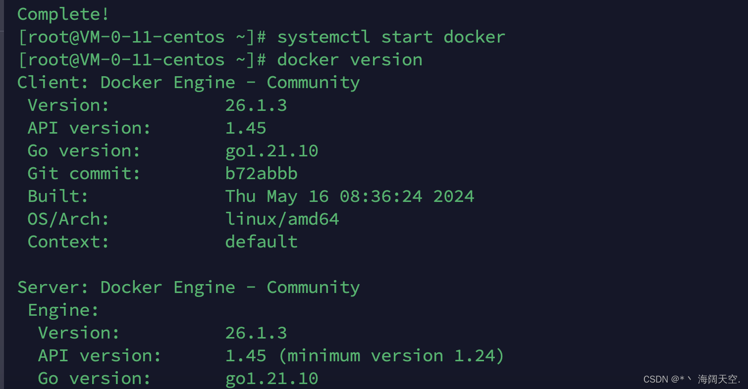 - 安装Docker Engine(docker引擎)最新的版本执行: