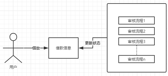 之后,参与审核的角色数变多,并且审核产生的业务参数变多(例如各类附件、意见等),直接添加字段到贷款表中显得不那么合理,同时不利于审核流程的体现。因此,这一部分需要单独重新设计,根据业务流的需要,将审核的事件单独拉出来一张表,通过外键关联到申请表中。(流程复复杂可参考工作流引擎的设计思路)