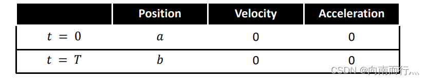 简单来说,就是我们已知机器人初始的状态(比如说初始的位置,速度,加速度等),以及最后的状态,也就是我们只考虑起始和最终的状态,不考虑中间的状态。