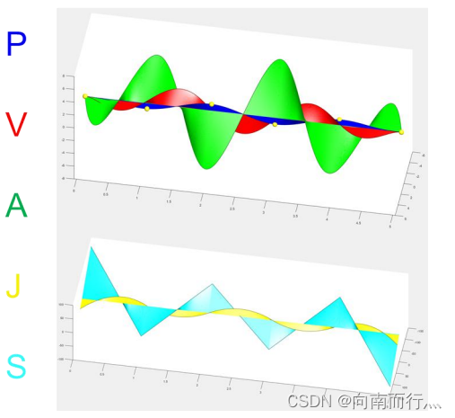 最优条件理论告诉我们:如果我们的输入是轨迹的 s 阶导数(如果是位置的话 s=1 ,加速度的话 s=2, jerk的话 s=3,依此类推),那么其描述轨迹的多项式的阶数就是 2s -1。我们现在要生成是jerk轨迹,那么多项式的阶数就是 2 * 3 - 1 = 5。