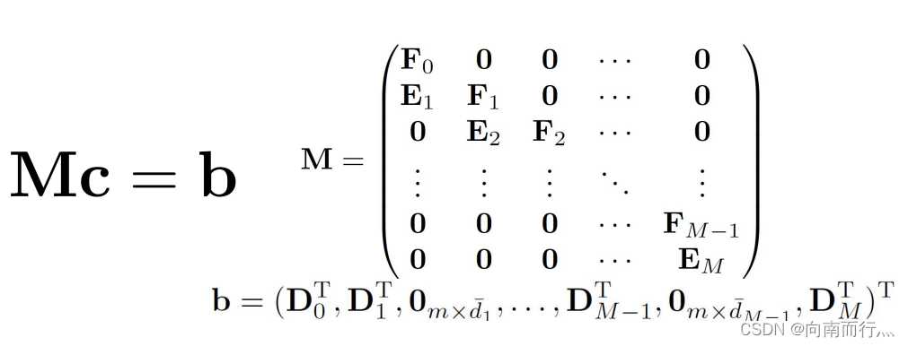 最后,我们就得到了最终的 M 矩阵和 b 矩阵, 接下来通过对 M 矩阵求逆就可以解出系数矩阵 c: