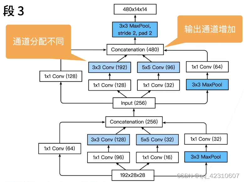 b3 = nn.Sequential(Inception(192, 64, (96, 128), (16, 32), 32),