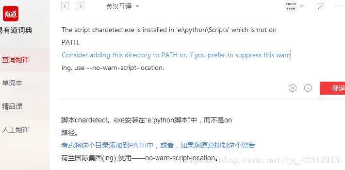 The script chardetect.exe is installed in 'e:\python\Scripts' which is not on