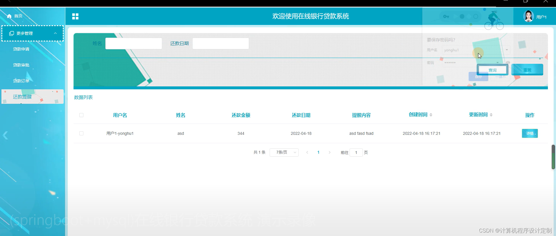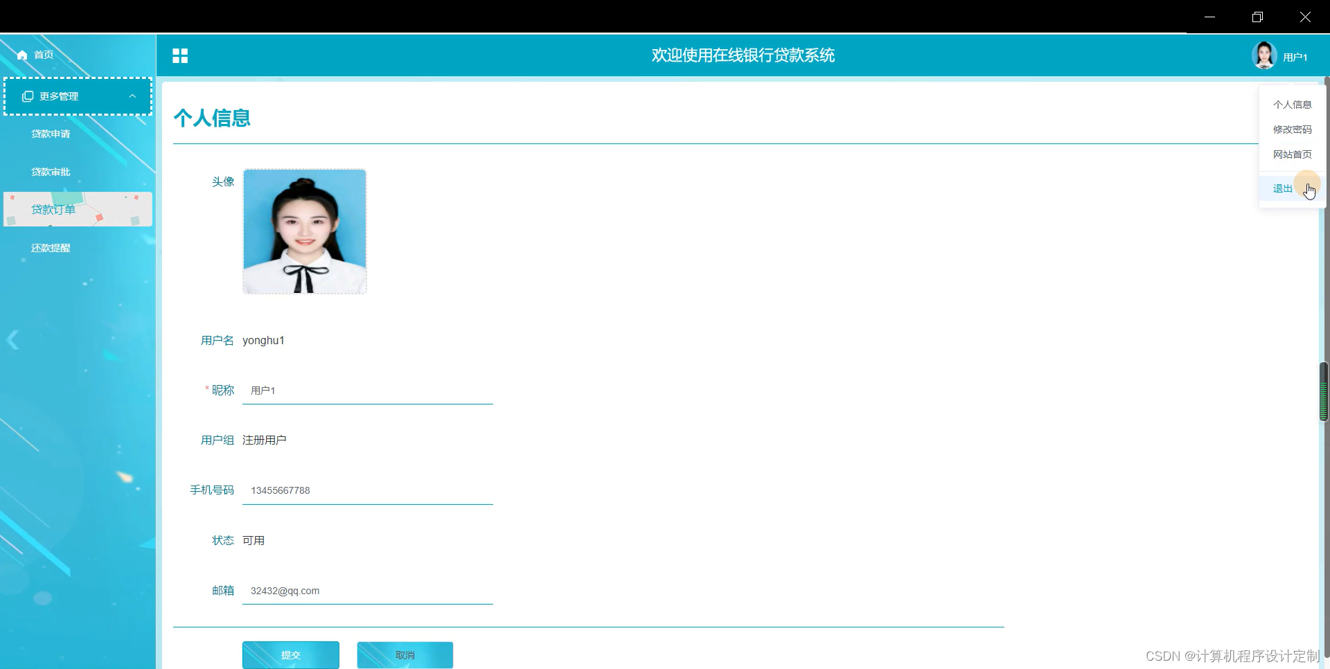 本系统的使用可以实现在线银行贷款系统管理的信息化,可以方便管理员进行更加方便快捷的管理。