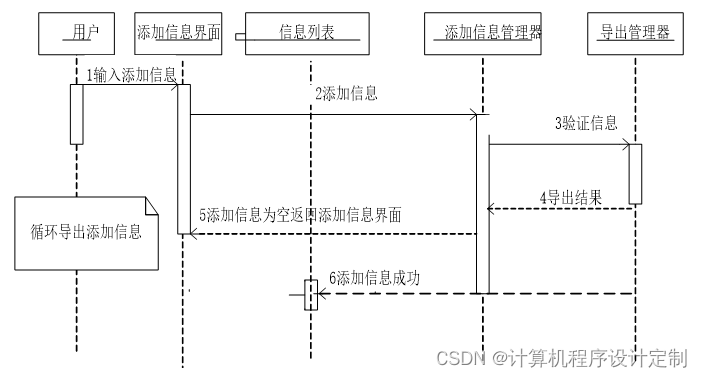 管理员以及用户登录后均可进行添加信息操作,添加信息模块顺序图如图4-4所示。