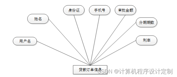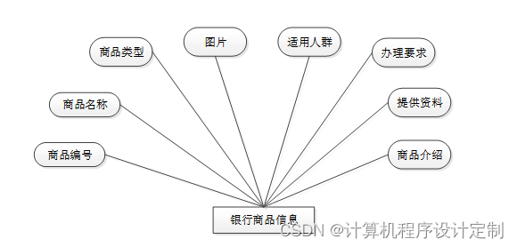 本在线银行贷款系统采用的是MYSQL数据库,数据存储快,因为在线银行贷款系统,主要的就是对信息的管理,信息内容比较多,这就需要好好的设计一个好的数据库,分类要清楚,不能添加信息的时候,造成信息太过混乱,设计好的数据库首先就需要先把各个实体之间的关系表达明确,系统的E-R图如下图所示: