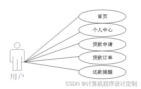(2)用户:首页、贷款申请、贷款订单、还款提醒等功能,用户如图3-2所示。
