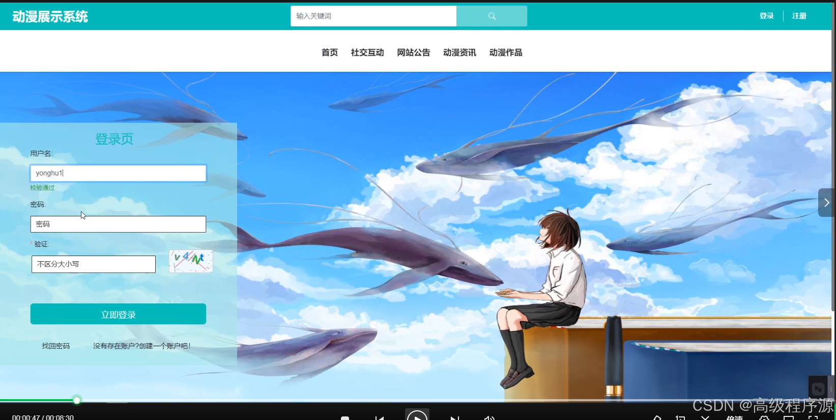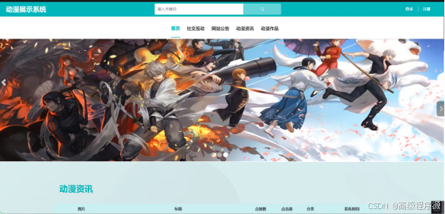 - 首页:用户可以查看首页展示的轮播图、动漫资讯、动漫作品推荐等内容。
