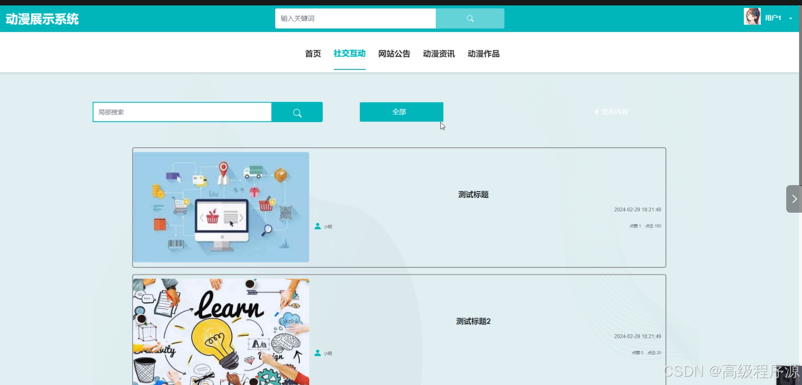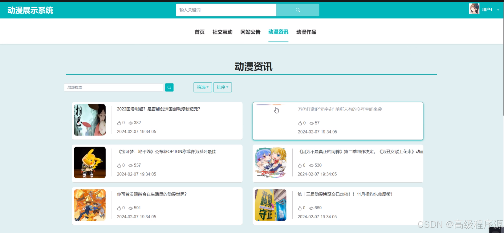 - 动漫资讯:用户可以查看动漫资讯列表中某一资讯详情并可以进行点赞、收藏和发表评论操作。