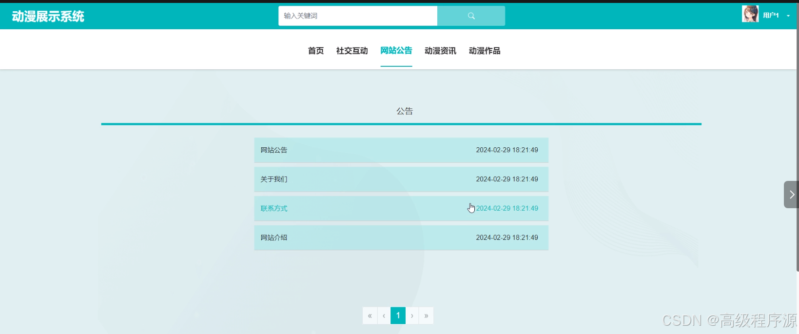 - 网站公告:用户可以查看网站公告列表中某一信息详情。