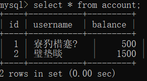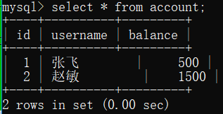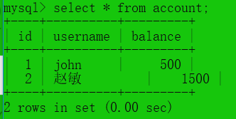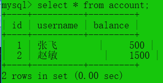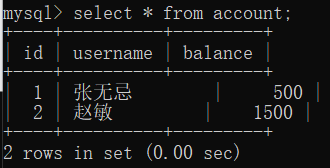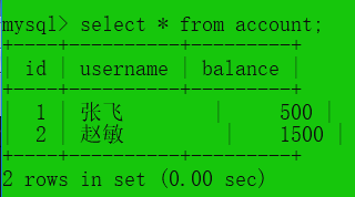 #2.开启一个事物,并查看表中的数据