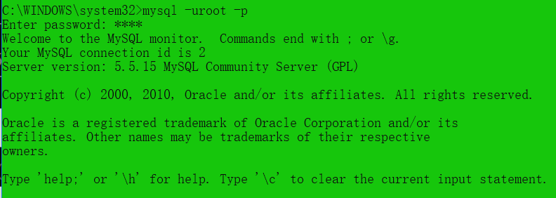 C:\WINDOWS\system32>mysql -uroot -pROOT