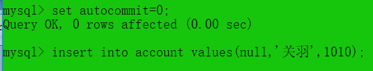 这个时候事物开起了,没有结束语句,数据还在内存中没有提交到硬盘