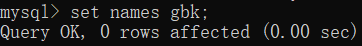 set names gbk;//好像是因为name有多个所以要加s,用name报错