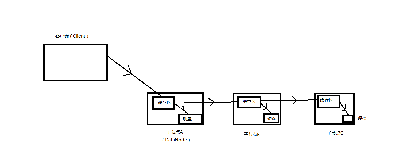 在客户端写数据时,并不是直接写入子节点的本地硬盘中的,而是写入第一个子节点的缓存区中,然后该节点开始讲缓存区中的内容一边往自己的硬盘中写一边往下一个子节点的缓存区中写,这样将每个数据块进行备份