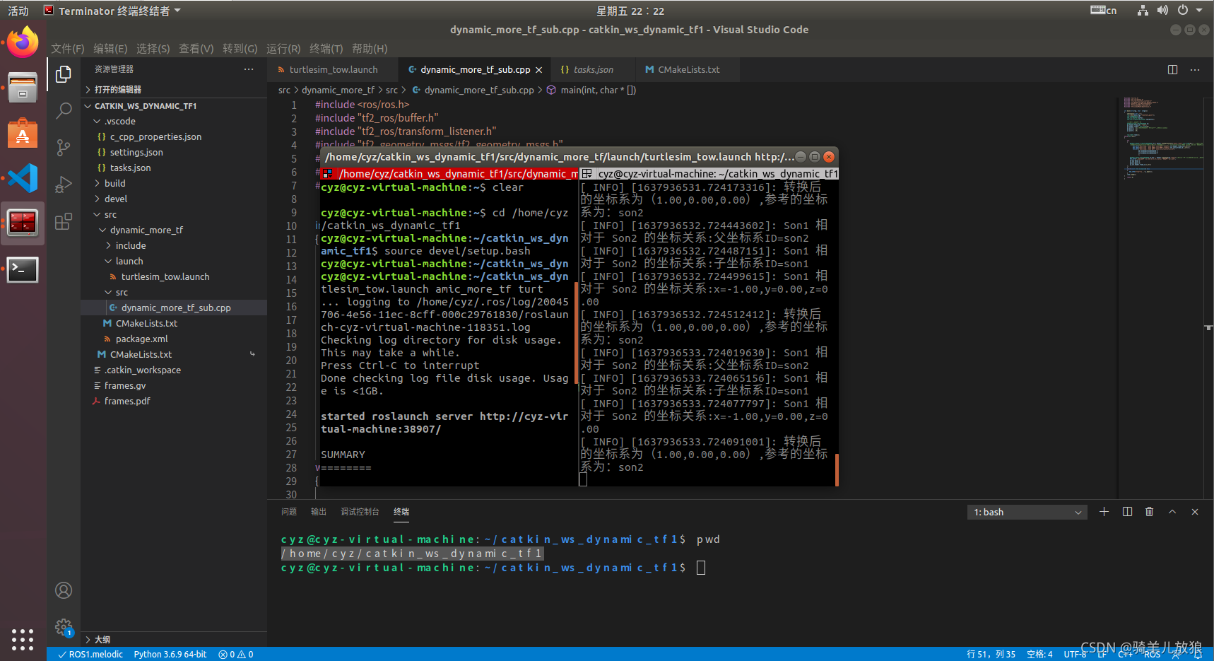 我这里是 先启动launch文件,再启动dynamic_more_tf_sub节点。