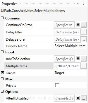 我们可以看到多个属性,但主要的重要属性是MultipleItems——它是一个字符串变量数组,它告诉我们要选择的多个项目是什么。