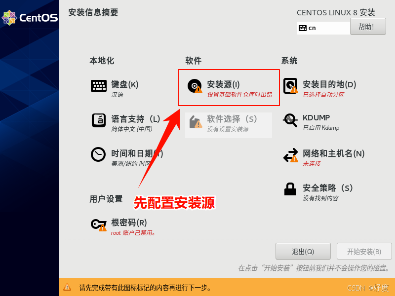 需要配置安装源:默认是国外源,如果不配置后续下载软件或插件速度会很慢,下面有很多源,配置哪个都可以,这里配置阿里源,第一行是阿里源